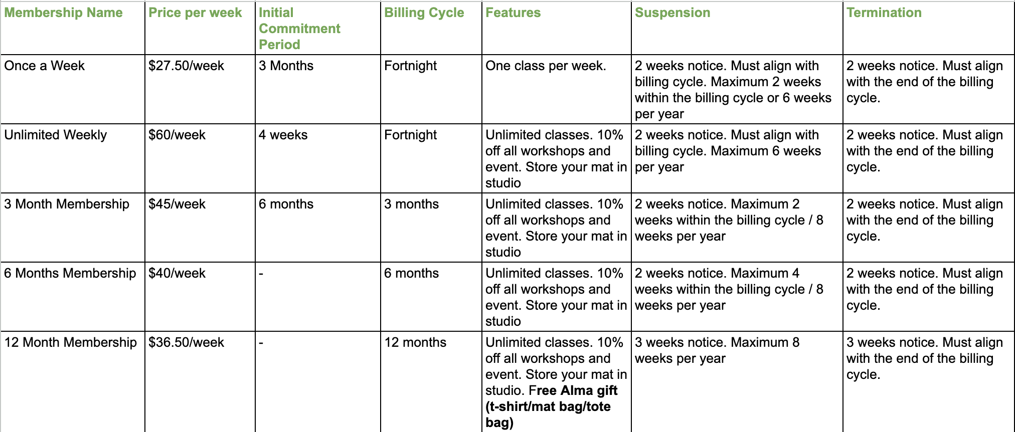 Our memberships are designed to offer flexibility while ensuring fairness and consistency for all students. Below is a summary of how our memberships work. Please refer to the table below for specific pricing, billing cycles, and inclusions. Please refer to the table below for details on each membership.